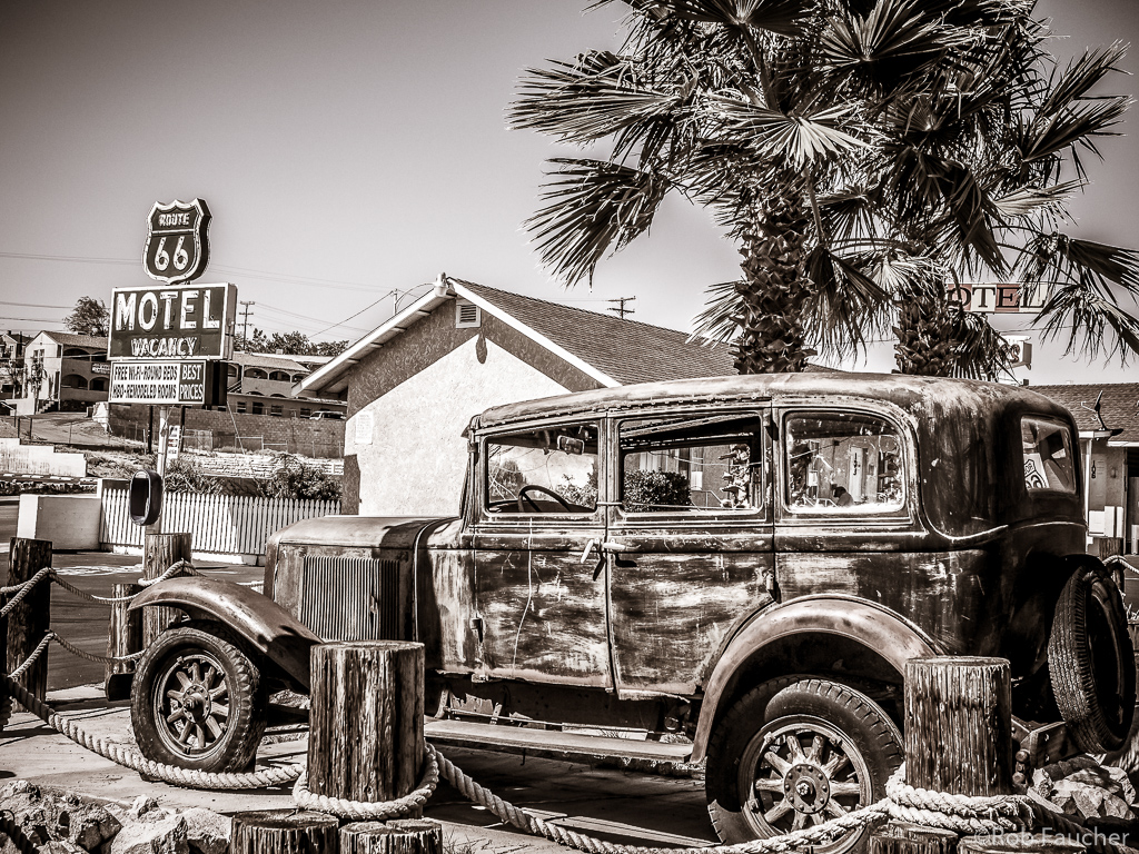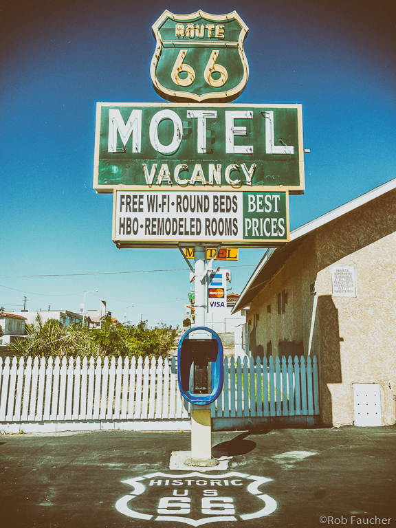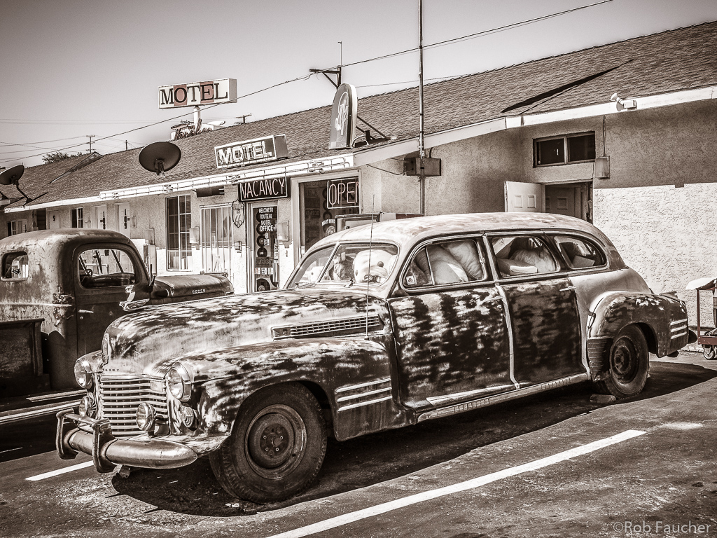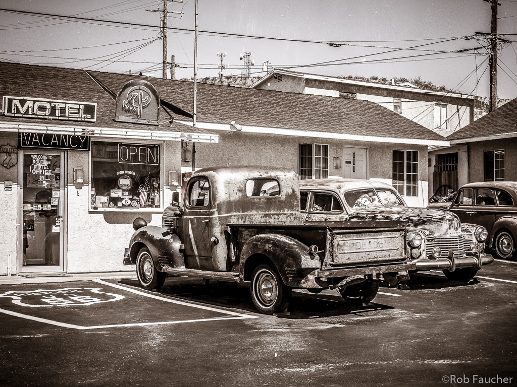 Before heading back to Arizona, I took some photos around the Route 66 Motel and requested an interview with Ved & Mridu Shandil. Over the years, they have done a fantastic job of keeping this historic property alive. Not only have they maintained the orginal building, they have created a unique and authentic Route 66 experience. Through a combination of old cars and unique landscaping there is tremendous curb appeal and photo opportunities. The office is decorated with countless gifts and souvenirs from customers all over the world. I really have the utmost respect and admiration for all their hard work. If that was not enough, they are also two of the nicest people you will meet on the Mother Road.